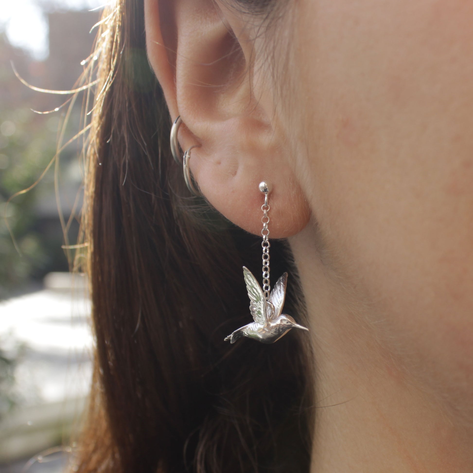 Sumérgete en un mundo mágico con estos aros de Picaflor. El picaflor es símbolo de alegría, agilidad ,renovación y de nuestra propia capacidad para fluir con la vida.